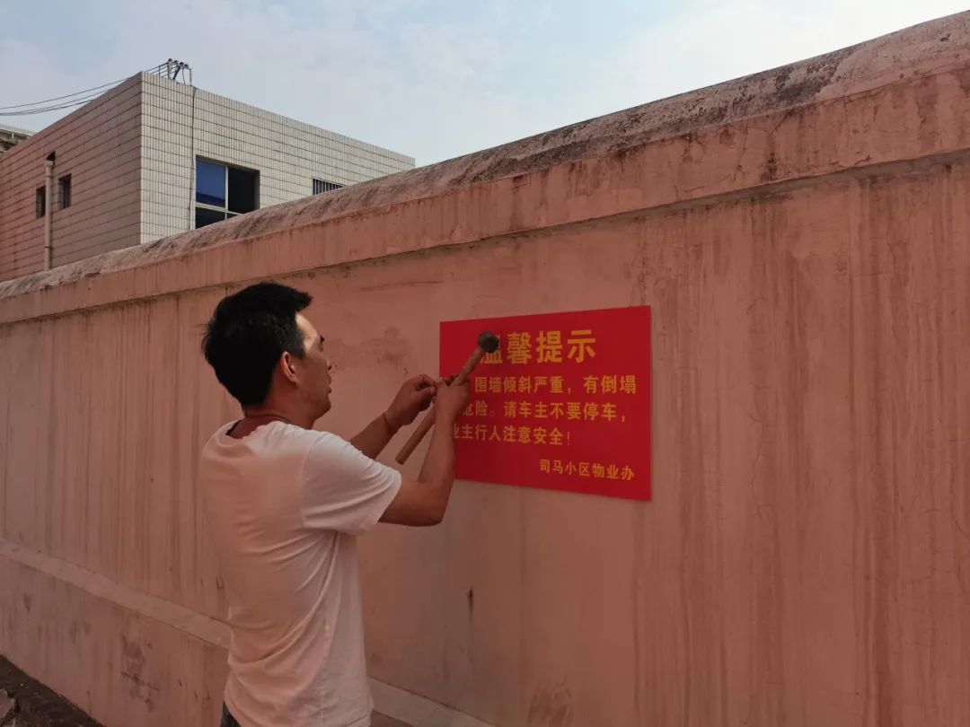 1.物业公司粘贴危墙警示标语,刷新消防通道,清理乱放垃圾,日常巡查电梯、消防设施等。