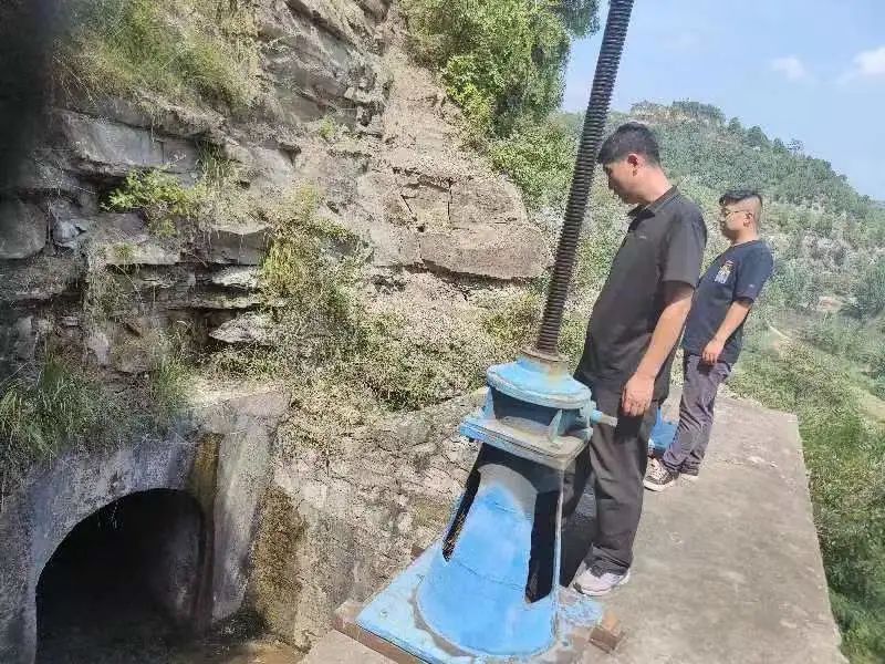 2.薛峰水库灌区管理处人员巡查水库大坝枢纽设施运行情况。