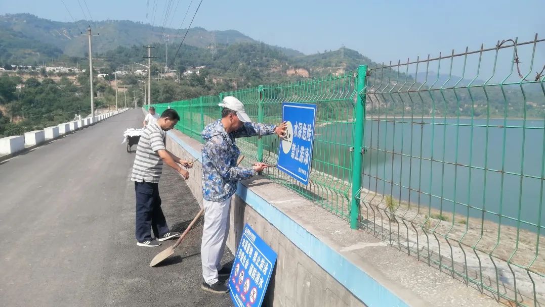 4.盘河水库库区站悬挂警示标语,巡查库周安全。