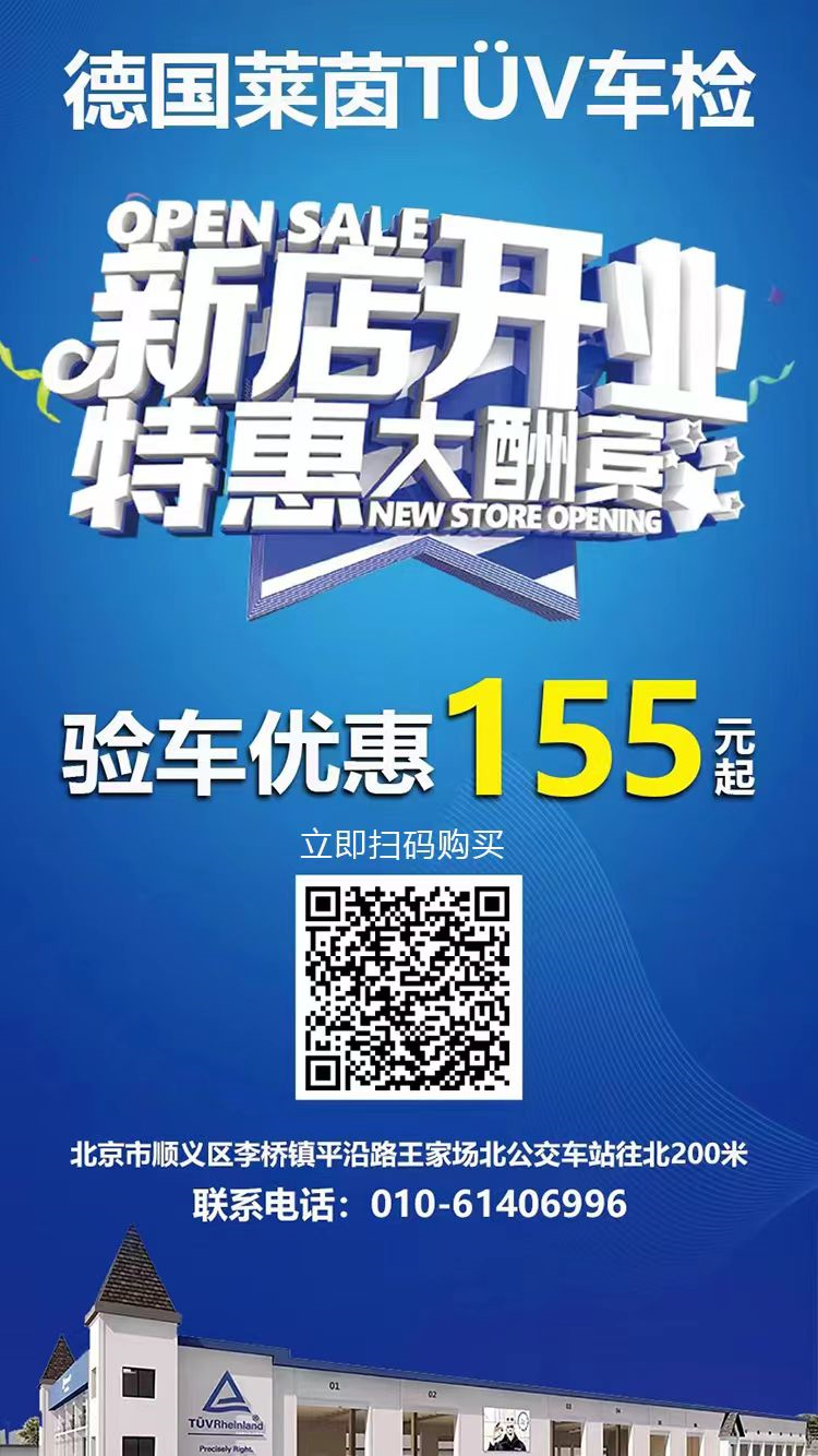 验车155元起,德国莱茵TÜV车检顺义李桥镇开业大酬宾团购来袭,限量百份,温馨交钥匙一站服务