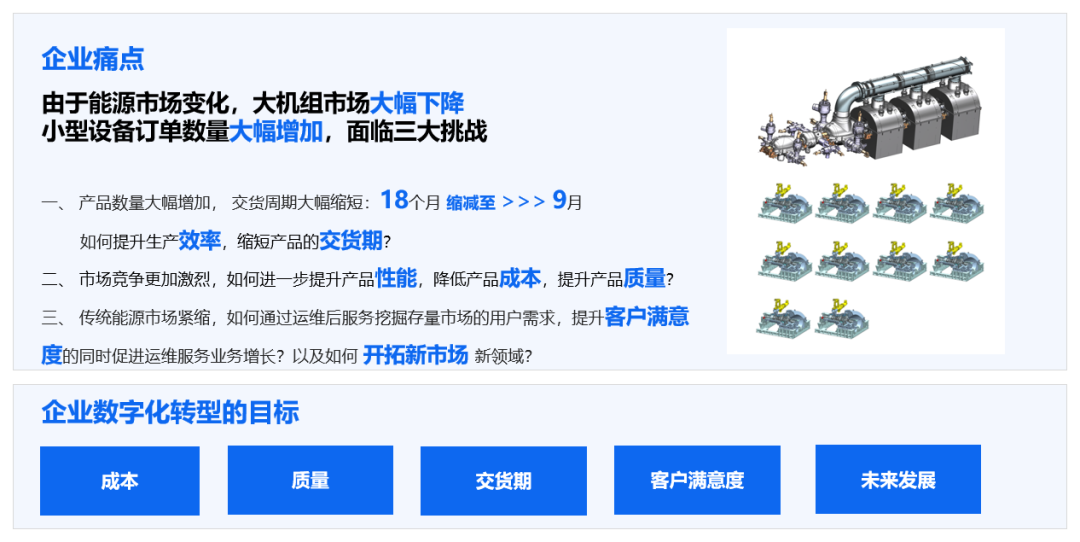 上海汽轮机厂作为电气装备制造的大国重器,根据工厂“信息工厂-透明工厂-智能工厂”发展战略和智能化发展要求,计划通过未来几年的探索,进一步提升工厂智能化深度和广度,实现智能工厂的终极目标的同时,来满足能源装备龙头企业数字化转型的国家战略和市场需求。