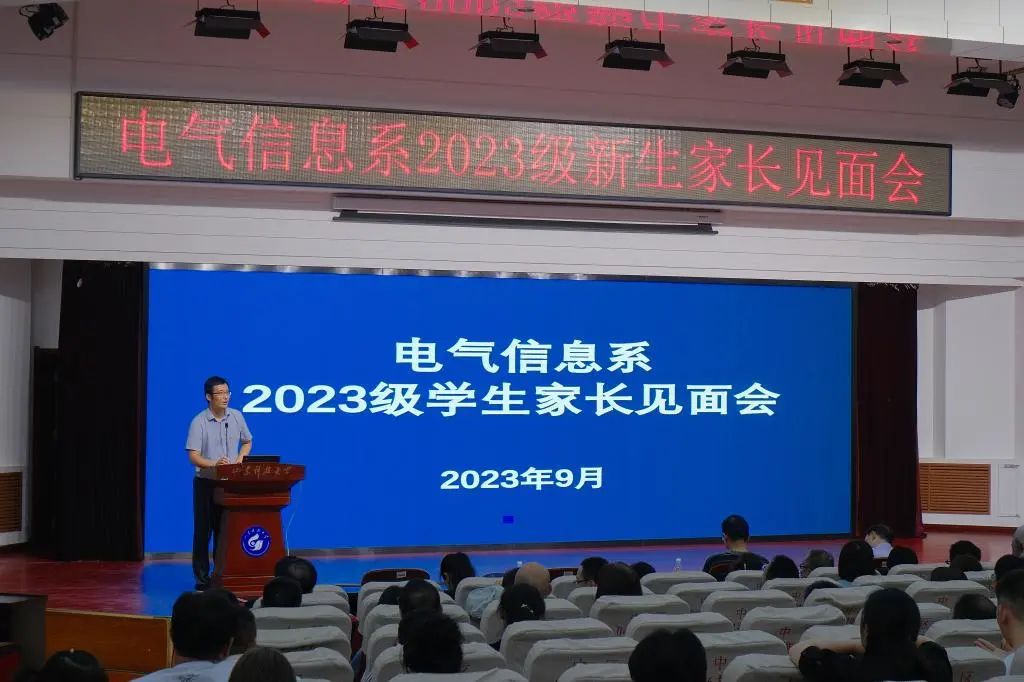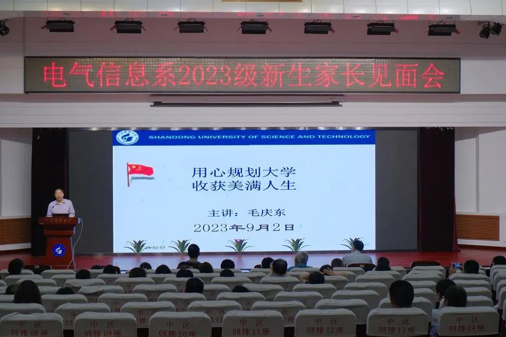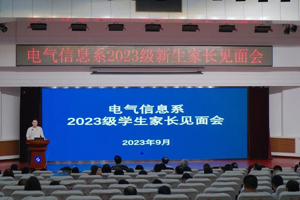 随后,党总支书记毛庆东以《用心规划大学,收获美满人生》为题,为全体新生家长作了的报告。毛书记代表电气信息系对2023级新生及家长表示欢迎,感谢家长们对学校、学院的信任与支持。他围绕电气信息系近年来的考研、出国与就业等情况,进行了分析说明。并勉励新生要珍惜大学时光,未雨绸缪提前做好规划与准备;要树立规则意识和正确价值观,保持阳光心态,养成良好习惯。最后,毛庆东书记向新生和家长送上祝福,希望学生们都能够全面成长成才。