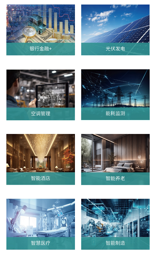在展示现有前沿强大行业影响力和市场竞争力的同时,拓展产品与技术在银行金融+、光伏发电、空调多联机管理、工业能耗监测、智慧医养、智能制造等领域的全新应用场景。