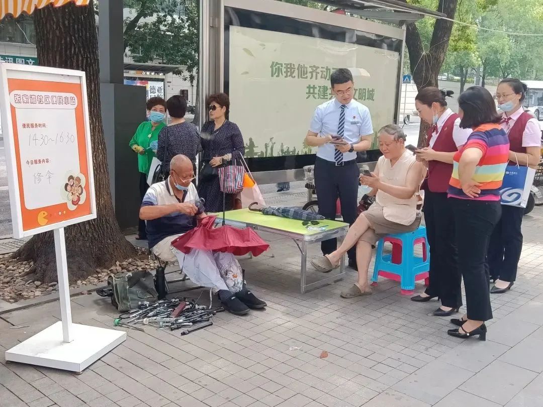 △张家湾社区“闲不住的”亭子试运营——联动兴业银行兴公益资源开展修伞服务