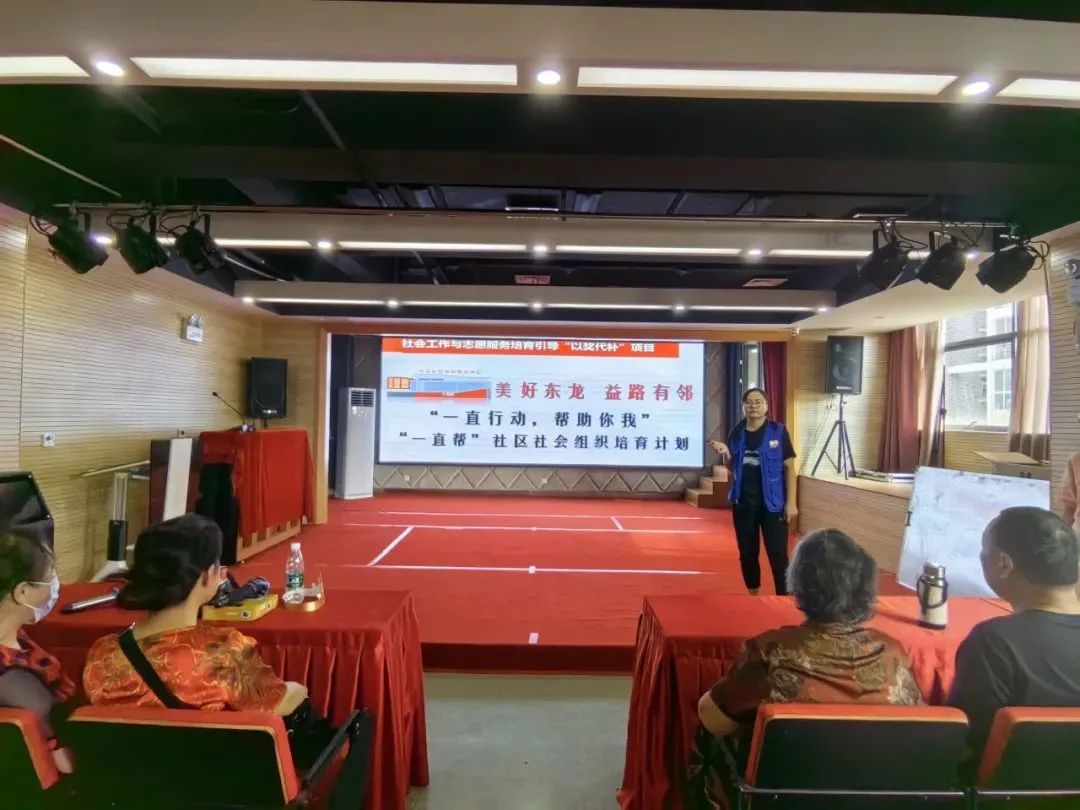 为培育孵化社区社会组织,动员居民加入社区志愿组织参与社区公益服务,东龙社区联合粮道街道社工站开展“一直行动,帮助你我”——一直帮社区社会组织培育计划活动。同时,还组织“绿丝带”志愿服务队开展护湖环保宣传活动,组织“邻里关照”志愿者开展困难老人慰问服务。