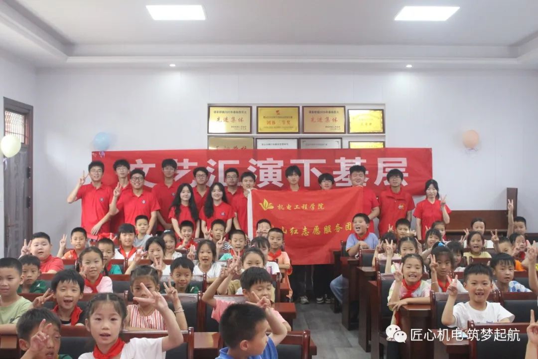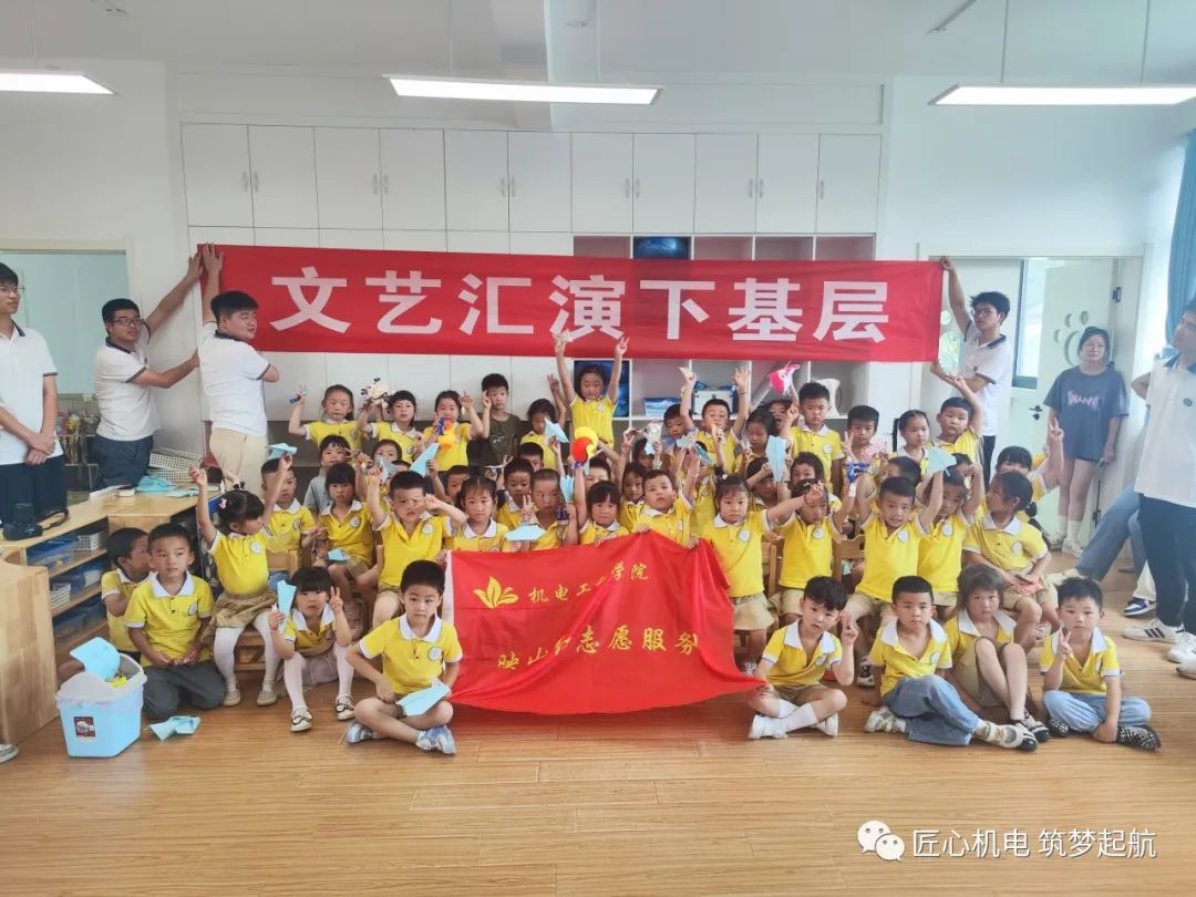 机电工程学院文艺演出队在小朋友们有趣的“科技小屋”手工小课堂结束后,给小朋友们带来精彩的文艺演出。
