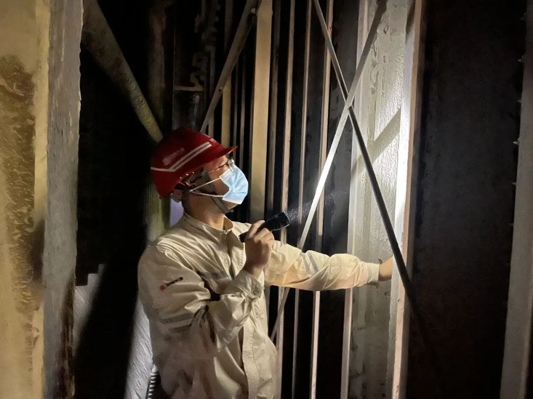 环保专业对5号炉电除尘内部开展缺陷排查工作。(作者:杜恩同)