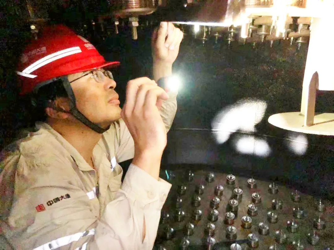 热控机控班配合拆除5B小机缸内测量元件。(作者:肖健楠)