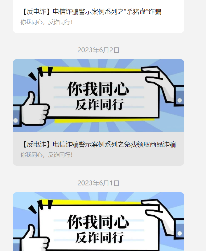 为深入贯彻落实党中央、国务院关于打击治理电信网络诈骗犯罪活动的决策部署,把反诈防骗宣传作为“我为人民群众办实事”的一项具体举措,支付公司党总支通过线上线下相结合、内外宣传相结合的方式积极开展反诈宣传,联合中国移动营业厅,在中国移动营业厅网点摆放《和包带您了解电信诈骗》《远离洗钱犯罪 尊享金融服务》和《普及金款知识 守住“钱袋子”》等宣传手册,滚动播放“断卡行动”、《反电信网络诈骗法》普法等宣传视频;同时在公司微信公众号、微博、抖音等新兴平台发布反诈防骗宣传视频和风险提示,旨在提高反诈防骗知识社会知晓率,增强社会公众反诈防骗风险意识与防范能力,共同筑牢反诈防骗防火墙,切实保护人民群众的财产安全。