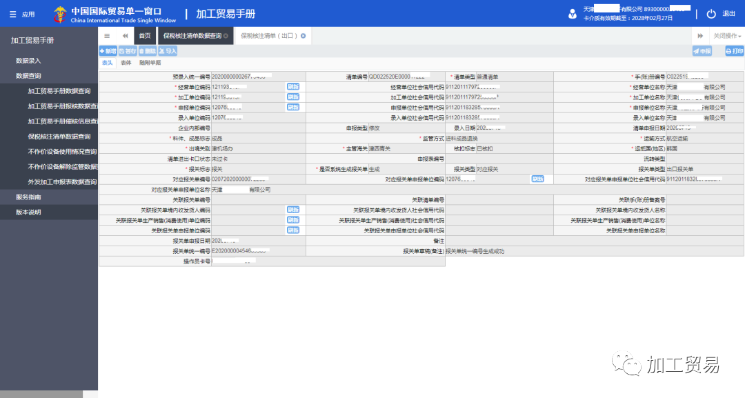 成品退换核注清单
