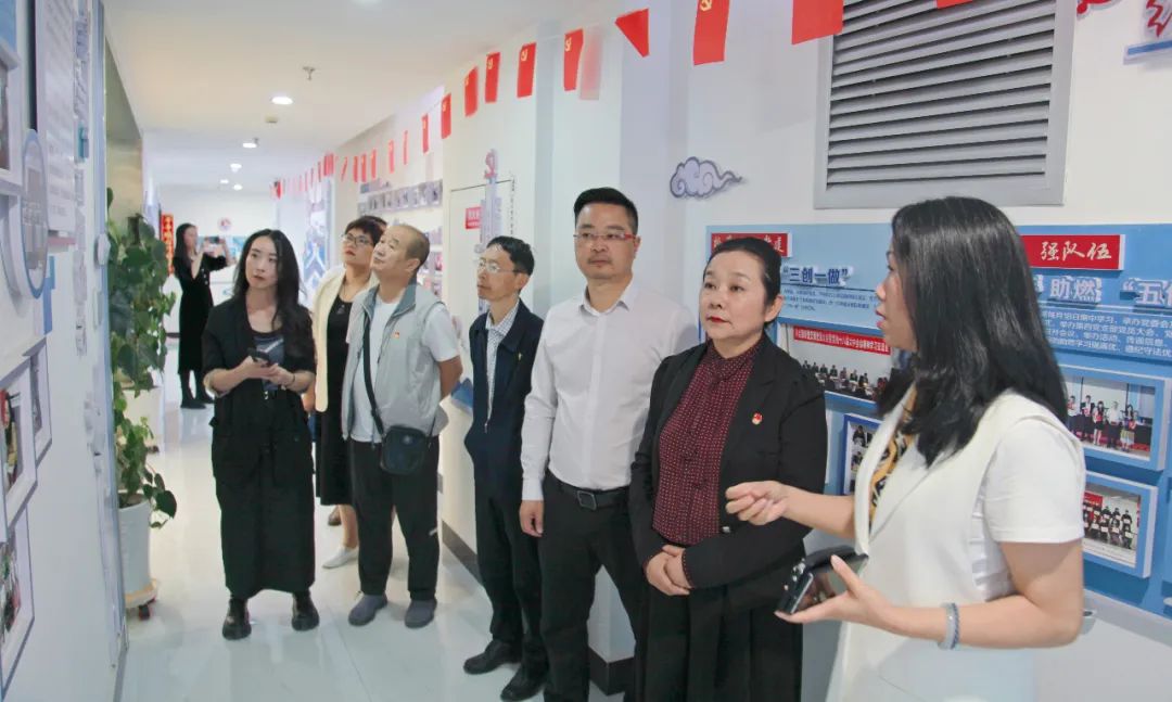 王丽芳秘书长结合商会党建文化走廊向李本菊主任一行介绍了商会建设和党建工作情况。随后双方进行了热情友好的座谈交流。