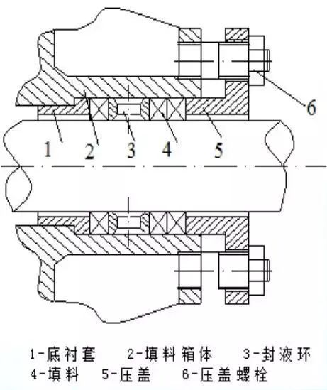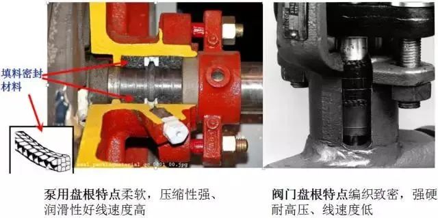 盘根通常由较柔软的线状物编织而成,通过截面积是正方形的条状物填充在密封腔体内,靠压盖产生压紧力,压紧填料,迫使填料压紧在密封表面(轴的外表面和密封腔)上,产生密封效果的径向力,因而起密封作用。