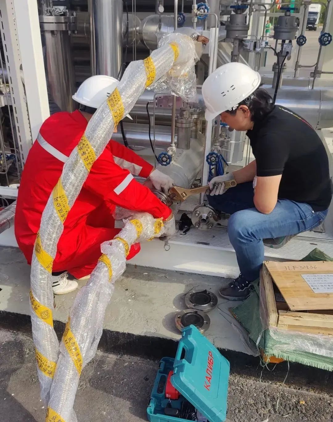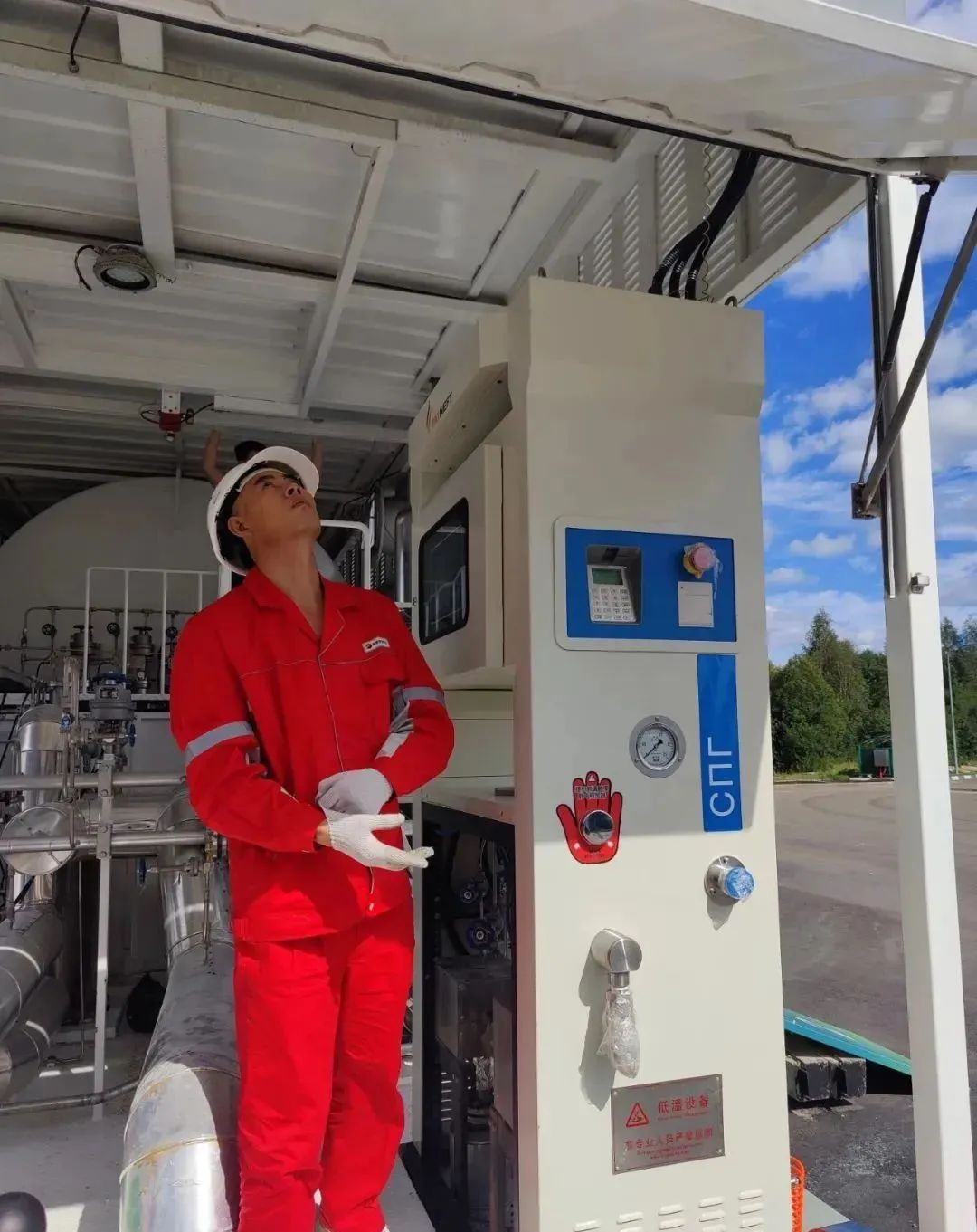 金星集团研发制造,出口俄罗斯的LNG全集成加液设备,经过该公司服务工程师不懈努力于9月3日安装完成,并成功加液。这也是俄罗斯首次引进中国制造的LNG集成加液设备。