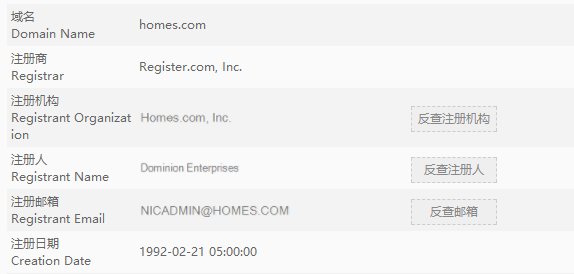 Home官网启用的域名是Homes.com,这个域名在1992就已经注册了,具有家、住宅的含义,行业指向性很强,直接对标到房地产行业本身,可以在无形之中给企业节省一大笔宣传推广的广告费用。