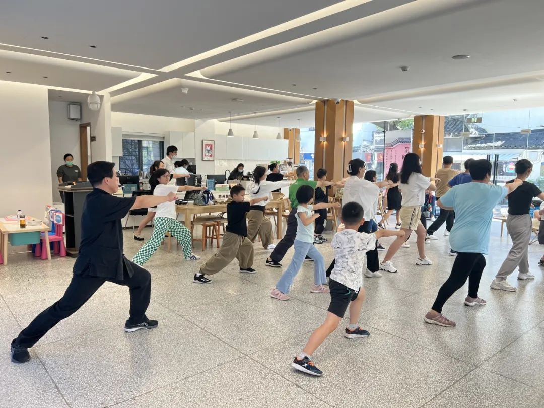 老师一个动作一个动作地教大家要领。刚开始,大家打的一头雾水,练了一会儿之后,大家都跟上节奏,坚持跟着老师的步伐练习。特别是小朋友们,动作利索,姿势到位,看起来真是有模有样,虎虎生威。