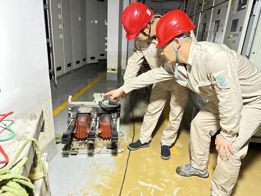 要想尽快恢复供电,就必须先抽干小区地下层的积水情况。为此,国网平潭供电公司安排共产党员服务队轮班驻守现场,确保发电设备以及抽水泵开始正常运转。随着小区积水源源不断的排出地下层,为随后抢修队员对小区配电房清理抢修工作创造有利条件。抽水完成后,该公司共产党员突击队不顾地下室潮湿、泥泞,采用沙袋对配电室门口及周边区域进行有效隔离,封堵倒灌漏洞,并对进水设备进行清洗、烘干。