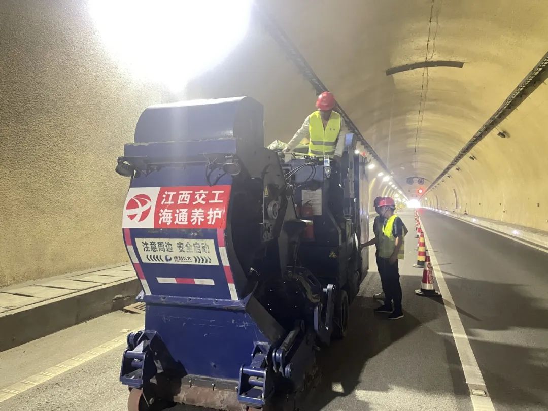 为提升萍洪高速明山隧道(下行)行车道和超车道路面的抗滑性能,近日,交工海通公司赣西事业部宜春基地引进新型抛丸工艺,对路面进行养护改造。
