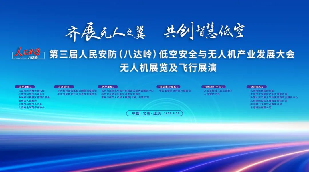 9月27日,由北京市延庆区人民政府、北京市科学技术协会、北京安全防范行业协会共同指导,中关村科技园区延庆园管理委员会、北京安全防范行业协会专家委员会联合主办的第三届人民安防(八达岭)低空安全与无人机产业发展大会将在北京延庆世园公园-中国馆召开。