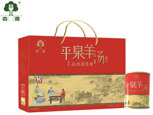 承德羊汤制作技艺带有浓郁的地方特色和民族特色,有别于其他地区羊肉汤、羊骨汤的制作方法,主要以羊杂为主料,与羊骨、羊头等共同熬制。原料选用和制作流程在我国众多羊汤制作方法中独具一格、别有特色,在制作过程中有着选料精、入锅细、汤要老、辅料全等特点。羊汤,有滋补、增强抵抗力的功效,是一种养生汤品。这款羊汤罐头食用方便,打开盖子香气四溢,浓浓的肉香味,分散到空气中,口感鲜香有嚼劲,方便快捷多种吃法。