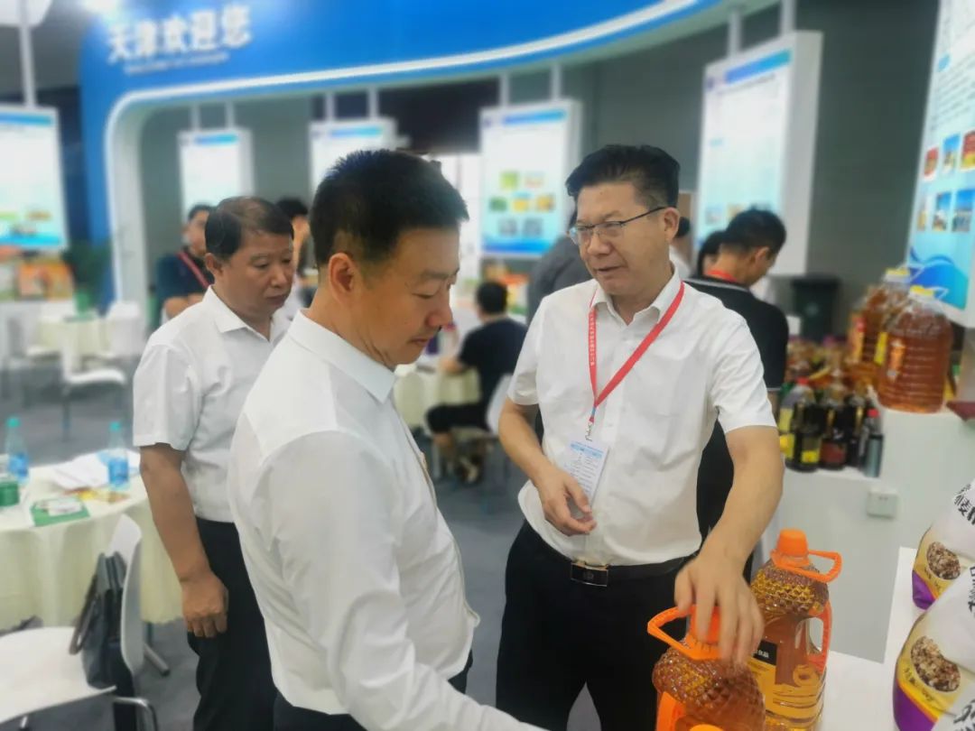 本次展会,天津企业代表团由市农业农村委副主任王志林带队,以产业融合和土特产为突破口,围绕奶业、生猪和小站稻产业集群以及葡萄、粮油、乳制品、调味品、蜂产品、清真食品加工等优势,共组织王朝酒业、中粮佳悦(天津)、利民调料、独流老醋、海河乳品、梦得乳业、天骄饲料、正达蜂业、津南小站稻、知味米、津沽粮食、津津食品、学清公社和骆驼房子烧鸡等15家加工龙头企业的20大类产品参展。