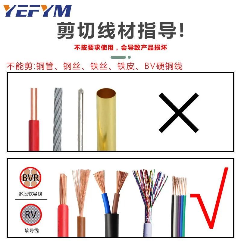 综上所述,YEFYM电缆剪刀电线钳以其多功能、手动操作和贴心的售后服务,成为了电工操作的得力助手。无论你是专业电工还是家庭维修者,它都能为你提供高效的解决方案。赶紧前往YEFYM五金工具官方旗舰店,获取这款工具,让你的电工工作更加便捷与高效!