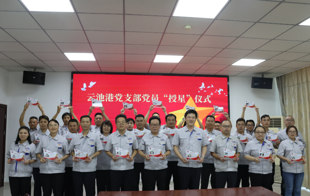 为丰富党建品牌内涵,云池港党支部结合“云池港湾,繁星闪耀”党建品牌开展了党员“画像定星”活动。党支部结合每名党员工作职责、当前状况和未来期望,认真提炼,精心打磨,为每名党员“画像定星”,将“活力港湾、清风港湾、绿色港湾、幸福港湾”的四个愿景镶嵌在31颗“党员之星”中,组成心型展示在党员活动室,将党建工作显性化、生动化、形象化,以高质量党建引领公司高质量发展,让党员的星光闪耀在云池港湾。
