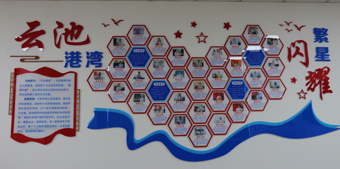 “云池港湾”:打造繁荣和谐的云池港湾,做到员工与企业共同发展;“繁星闪耀”:通过每名党员立足岗位发光发热,带动全体职工推动公司发展。