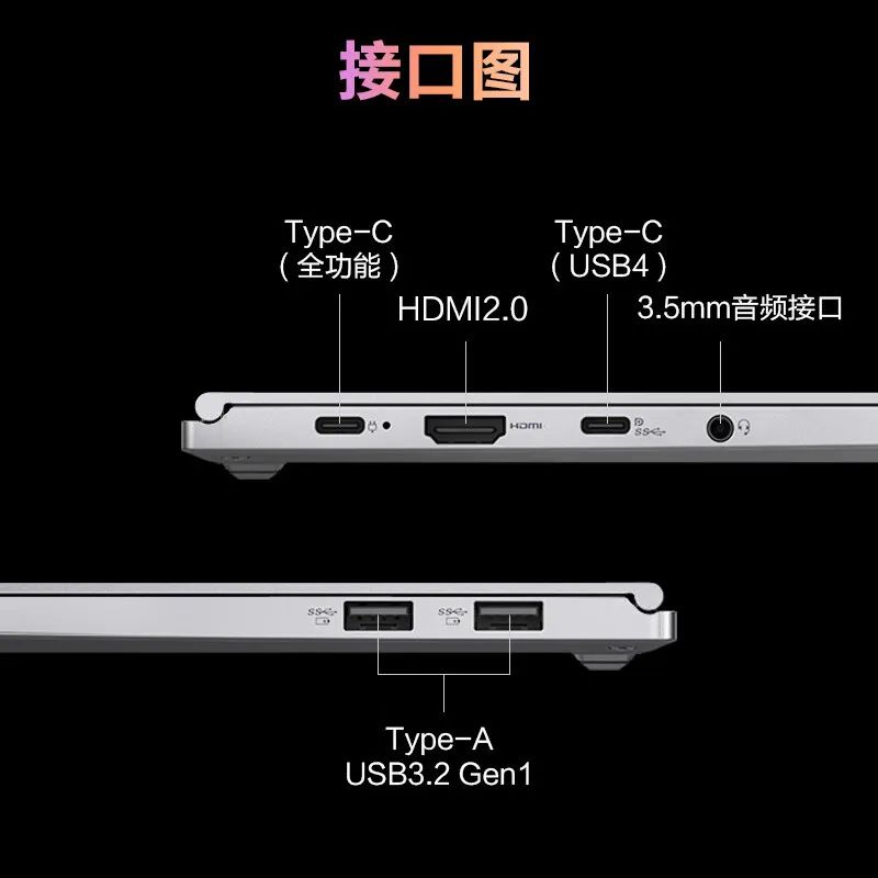 接口方面,有USB4接口,这可以给电脑100W供电,还有全功能USB-C接口,以及两个A口,一个HDMI2.0接口。
