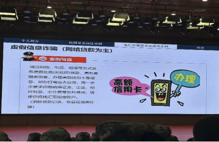 丁警官首先向学生们介绍了常见的电信网络诈骗类型,如电话诈骗、短信诈骗、网络诈骗等。他揭批了诈骗犯罪的手法,并解析了一些典型的案例。通过这些案例,学生们能够更加深入地了解电信诈骗的实际情况,增强对于这类犯罪的认识和警惕性。此外,丁警官还给出了一些防骗提示,并呼吁同学们下载国家反诈中心APP,帮助学生们在面对电信诈骗时能够及时识别并采取正确的防范措施。
