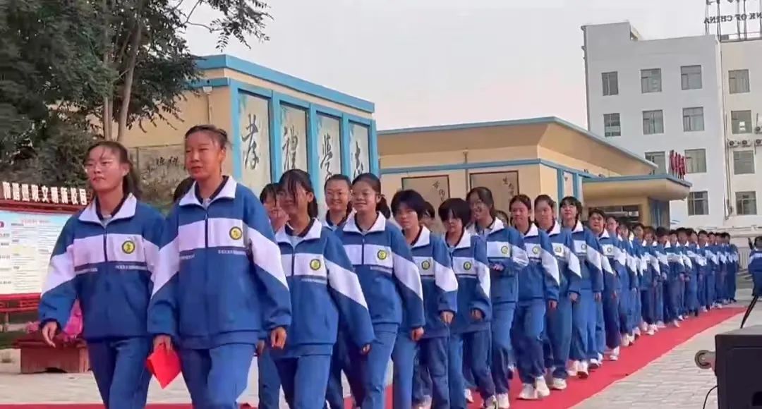 大会第一项:学校党委书记刘小平同志、校长鲁燕同志、专职副书记张志军同志、副校长薛明海同志、王玉海同志、刘建平同志带着他们的新学期寄语入场。