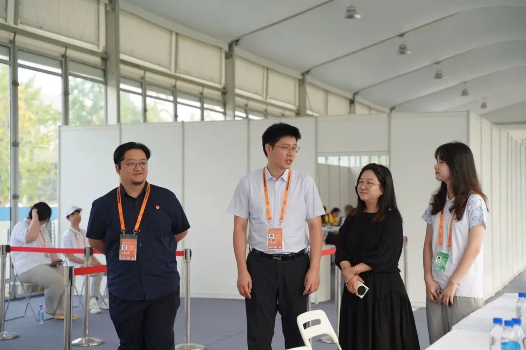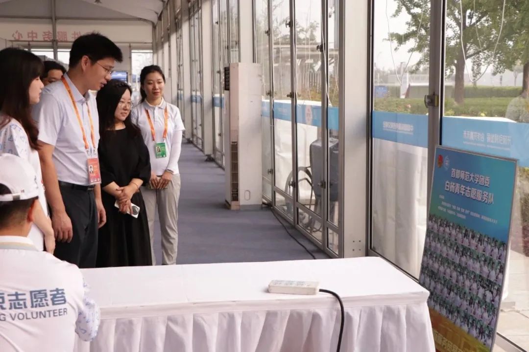 齐成龙书记一行首先来到国家会议中心展区证件服务中心,看望我校在岗服务的志愿者们。他认真听取了志愿者的工作情况与心得体会,高度赞扬了志愿者们良好的精神风貌,传达了学校对志愿者的关心与慰问。他表示,服贸会作为中国三大展会之一,对于同学们开拓国际视野、增长干事本领、提升综合素质具有重要意义,他勉励所有志愿者继续传承首都师大志愿服务的优良传统,持续发扬“奉献、友爱、互助、进步”的志愿者精神,在国家重大活动中积极作为,勇于承担,在盛会中展现首都师大学子的青春风采。