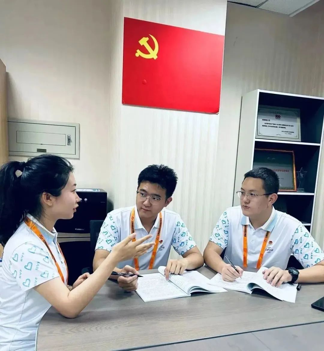 临时党组织同时开展三重温活动:重温党章、重温入党誓词、重温党的经典文献,志愿者们深入学习革命历史,坚定身为青年大学生的理想信念,了解服务贸易发展的巨大成就,践行志愿服务职责使命,与祖国同向同行。