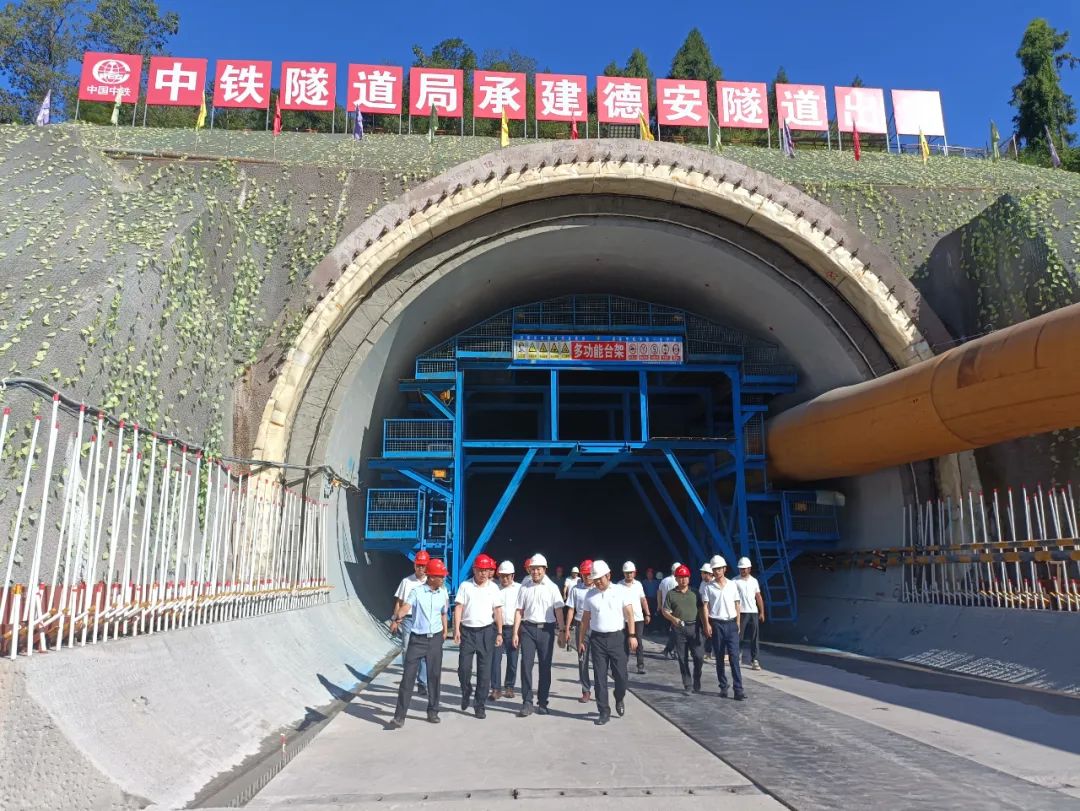 付国成深入德安隧道出口施工现场,详细了解了工程推进情况、总体施工组织及现场管理、示范段推进情况,对隧道开挖成型、衬砌质量、施工质量、施工进度和工艺工装标准化作业给予充分肯定和高度评价。在调研中付国成提出,德安隧道在施工中采用止水带保护工装、衬砌养护工装、仰拱边基防水板作业平台、仰拱初支超欠挖控制等好的经验做法,值得推广和借鉴。同时,付国成也提出了相关工作要求:一是要深刻汲取8.21金阳山洪事故教训,高度重视、压实责任,认真细致做好施工区域和驻地生活区域的安全隐患排查,落实安全防护措施,做好应急处置预案,确保员工生命财产安全;二是德安隧道作为瓦斯隧道和穿越复杂地层的高风险隧道,设计、施工单位要坚持安全为本、稳中求进、科学施工,在超前地质预报、瓦斯检测、安全措施到位前提下安全施工;三是作为隧道施工的示范点,要固化经验做法,全力打造精品工程,并通过成达万全线先行示范段的打造,加强交流和经验推广;四是要结合德安隧道工程实际,优化调整施工组织,加快工程施工进度,高质量、高标准、高效率推进工程建设,确保工期目标。