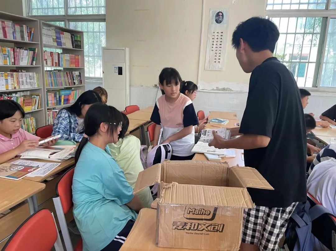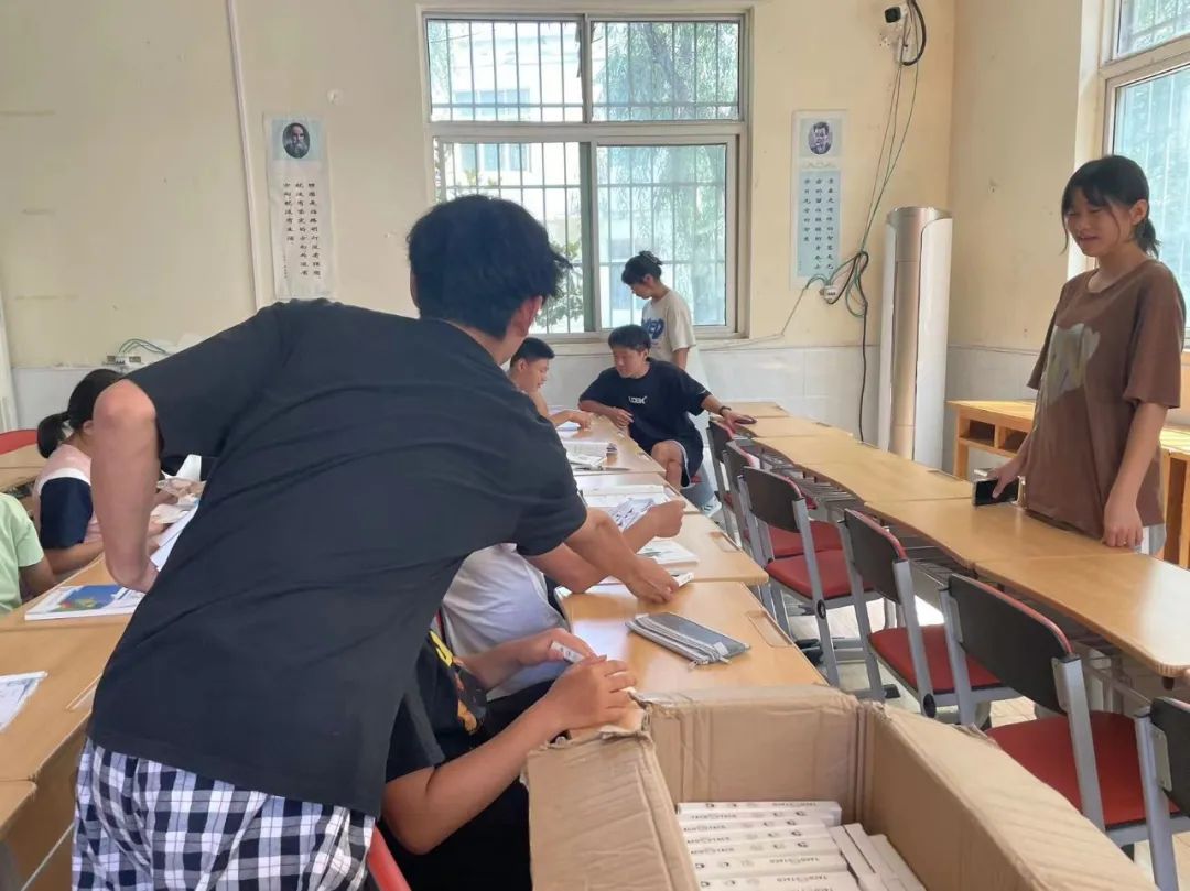 紧接着,在学习辅导之后,实践团成员们利用自己的钱财为他们发放了一批文具用品。实践团成员们希望用自己的爱心和善举为这些孩子们创造更好的学习环境。孩子们收到文具的时候,脸上洋溢着开心和幸福的微笑,他们将这份礼物看作是对他们学习进步的一个奖励。
