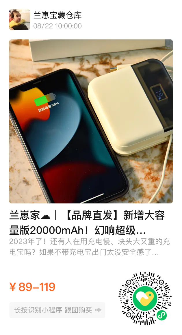 优点列不完的充电宝肯定很贵吧?那必须是的!!✅S1京东价?199,开团S1?89.9!✅S2京东价?299,开团S2?119!开团立省100+!真是杀疯了!这不是便宜一点,是亿点点……