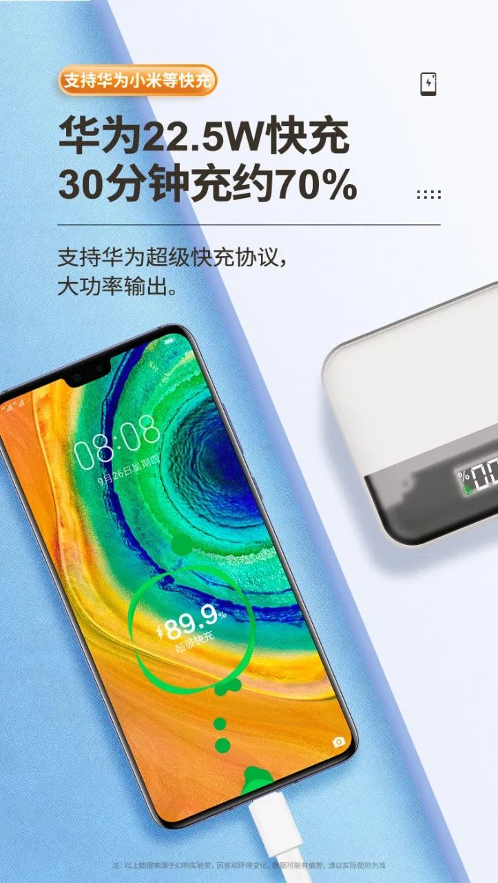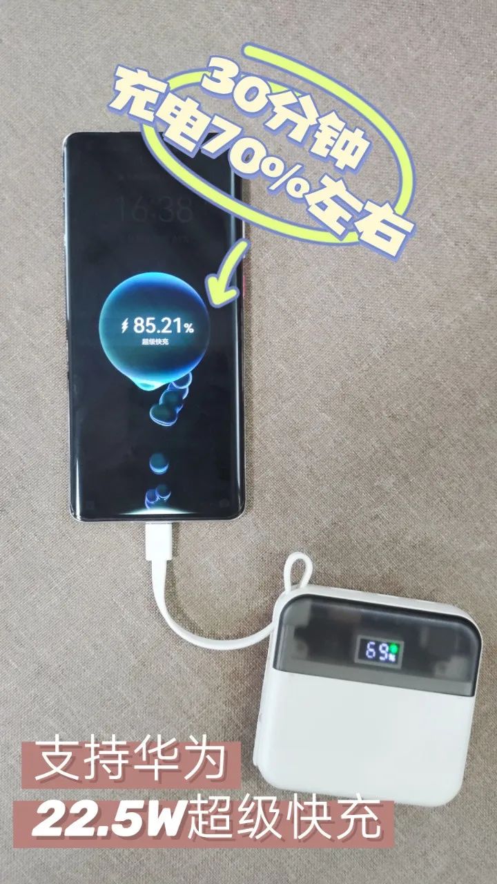 支持华为22.5W超级快充 和苹果PD20W快充? 亲测30分钟就能充到70%左右 再也不用怕手机突然没电了?