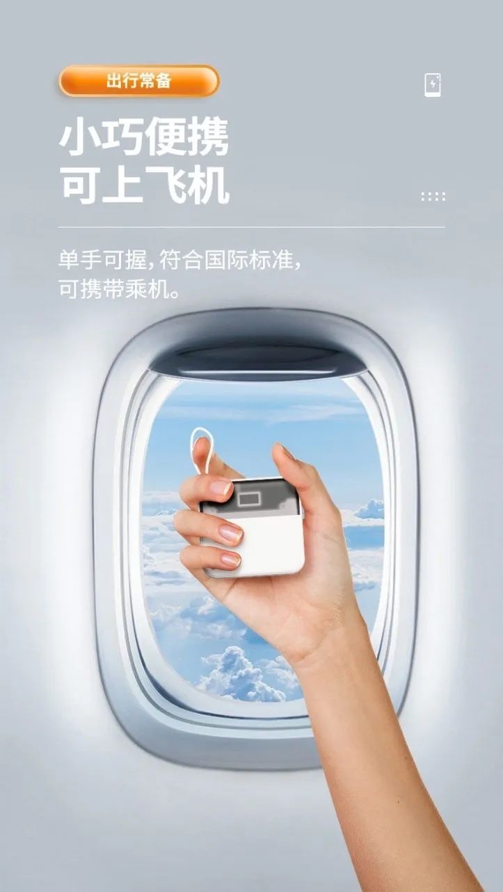本以为这么大容量的充电宝会巨大巨重 结果人家只有84*80*25mm 比我手掌还小!自重也只有 天生的出行神器啊? 坐飞机、高铁,携带真的很方便