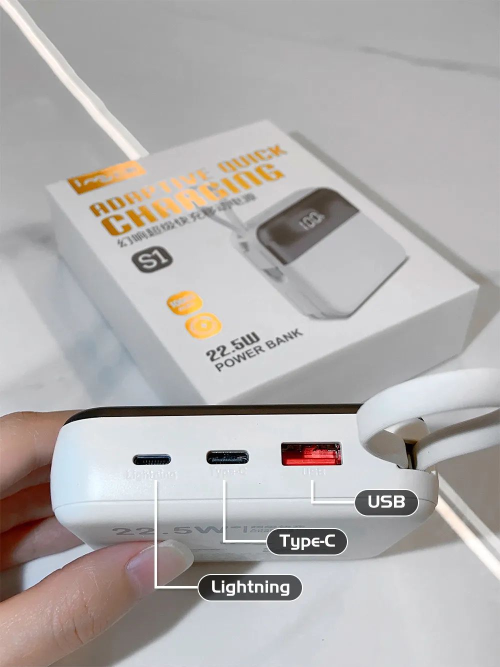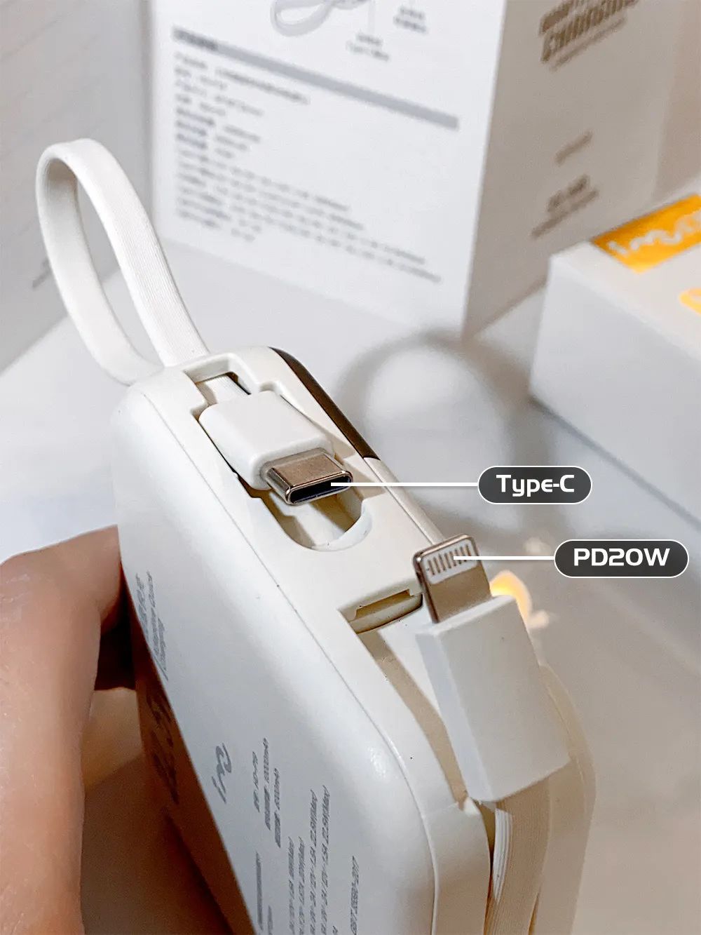 自带苹果Lightning+安卓Type-C充电线 出门都不用另外拿线了!方便 还有收纳设计,告别杂乱~ Type-C充电线收起来之后 还是一个小拎带 半强迫症选手表示十分满意!