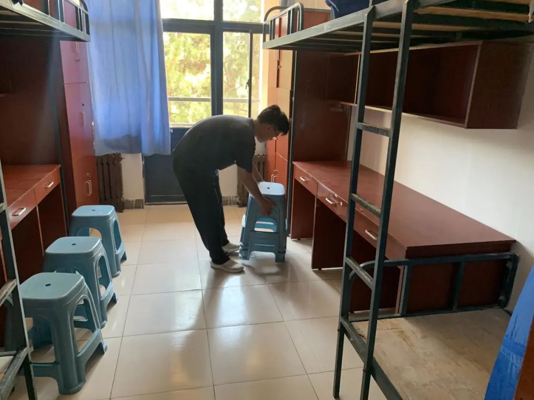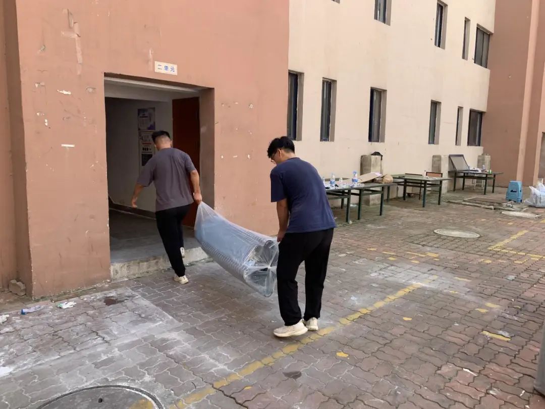 学生干部分工协作,认真检查新生宿舍,搬运床上用品、打扫卫生,各项工作有条不紊。大家用实际行动为学生办实事,如期圆满完成了1229名学生的宿舍整理工作,干净明亮的寝室已静候你们的到来。