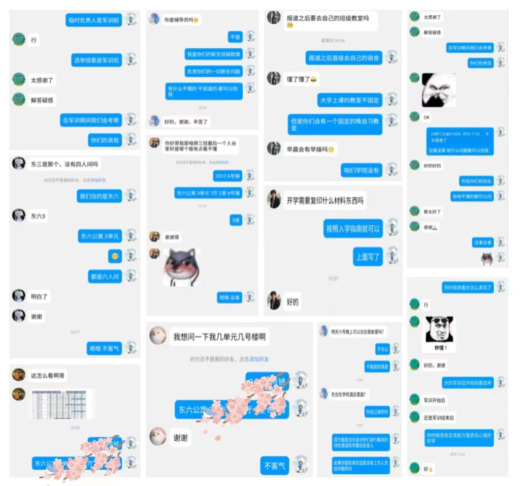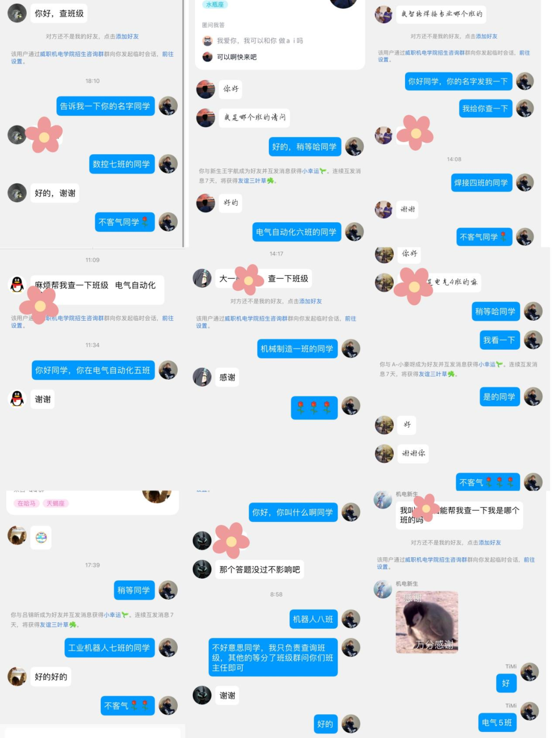 对于刚上大一的新生们,初次接触一个陌生的环境,一定会有许多的问题与疑惑,学生干部积极为新生解答疑惑,帮助他们解决问题,耐心与他们交谈。用实际行动传递温暖,用声声问候消除新生的迷茫与不安。