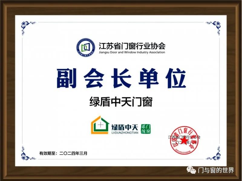 近日,经过江苏省门窗行业协会理事会审议表决通过,绿盾中天门窗凭借过硬的行业影响力和品牌实力,正式当选江苏省门窗行业协会『副会长单位』。