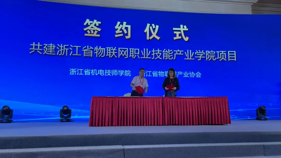会上,浙江省物联网产业协会与浙江省机电技师学院签约共建浙江省物联网职业技能产业学院项目,协会代表出席授牌仪式。