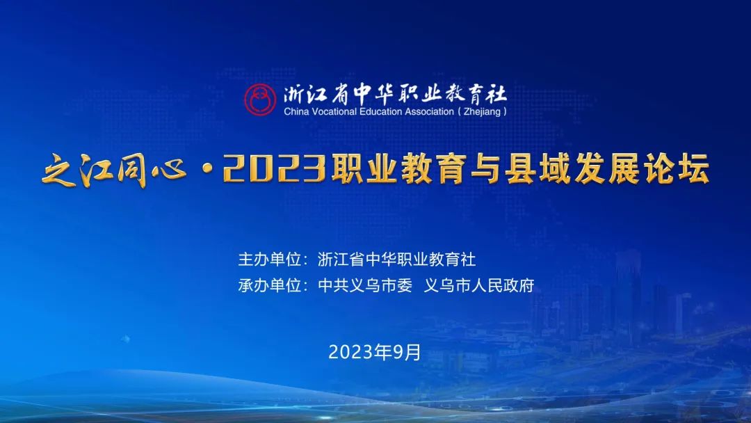 9月5日,由浙江省中华职业教育社主办,中共义乌市委、义乌市人民政府承办的“之江同心·2023职业教育与县域发展论坛”在义乌召开。省政协副主席、省中华职教社主任陈小平作书面讲话,省委统战部副部长、省中华职教社常务副主任王利月主持开幕式,金华市委常委、统战部部长王志强及义乌市委书记王健出席开幕式并致辞。各市委统战部分管负责同志、特邀专家、全省中华职教社相关组织负责人、社员代表、职业院校代表、企业家代表200余人出席活动。