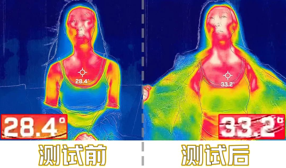 吹风测量温度是28.4℃,吹冷风15分钟后,温度上升到33.2℃,轻松提升4.8℃。