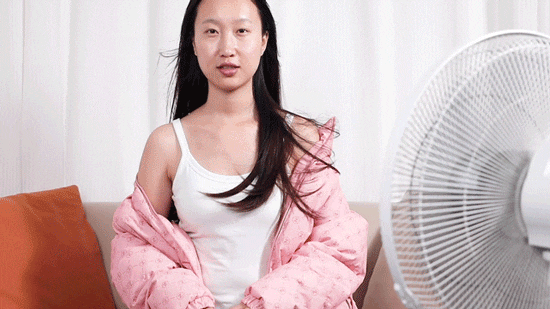 为了看一下这款棉服的保暖力,我还穿着我们的这款衣服整整吹了15分钟的冷风。