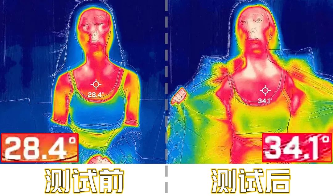 吹风测量温度是28.4℃,吹冷风15分钟后,温度上升到34.1℃,轻松提升5.7℃。