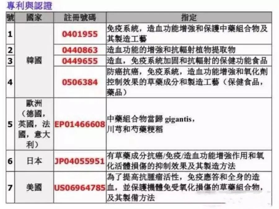 为预防韩国核研究员因放射性泄漏而导致的健康影响,而在总统的指示下开发出的产品。 以韩国原子力研究院下属的韩国原子力医院的教授赵成基博士为首的15名博士组共同研发的产品。 从韩国重要的30多种中药以及香草植物中抽取的,是100%植物中抽取的产品。 长达8年的以原子力医院和乙支大学附属医院的癌症患者为临床试验,投资50亿韩元的研究开发费用,研发出的世界最新物质。 因为它不仅是从熬的中药中抽取出的产品, 而是利用生命科学技术提取药材和香草植物的有效成分后,组合这些成分制造出来的,完全不含有中药的毒性成分,肝脏不好的患者也可以服用。 给患者试用后发现,产品具有很强的速效性,所以作为保健营养品得到了韩国食品医药品安全厅的认可,并且通过了美国的FDA(美国食品药物局)认证。 在韩国获得了5项专利,在美国,日本,英国,法国,德国,意大利等国家,也获得了两项国际专利:增强免疫及造血的产品。 被誉为是20世纪医学界的重大发现! 特别是在三种免疫细胞NK细胞、B细胞、T细胞中起了有效的强化免疫能力的作用。