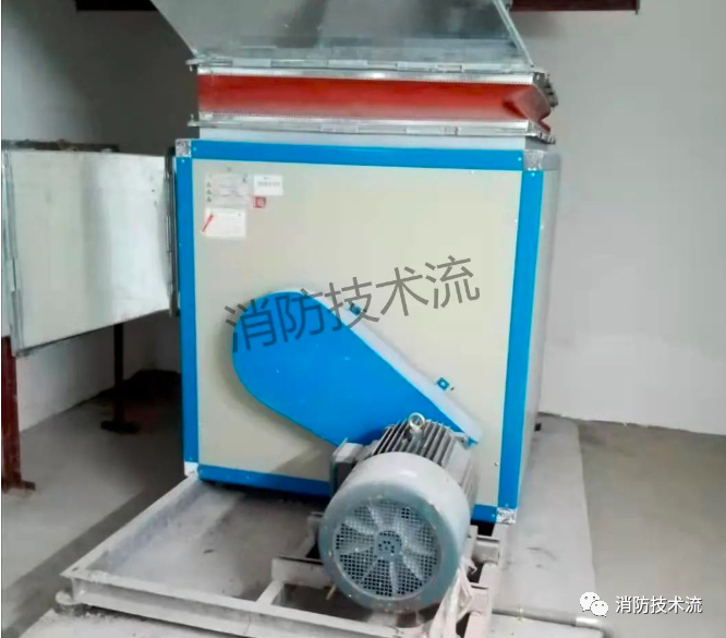 b、排烟风机:安装在建筑物内,发生火灾时用于排除烟气的通风机。