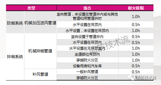 (3)现行标准对不同安装位置的防排烟管道耐火极限要求: