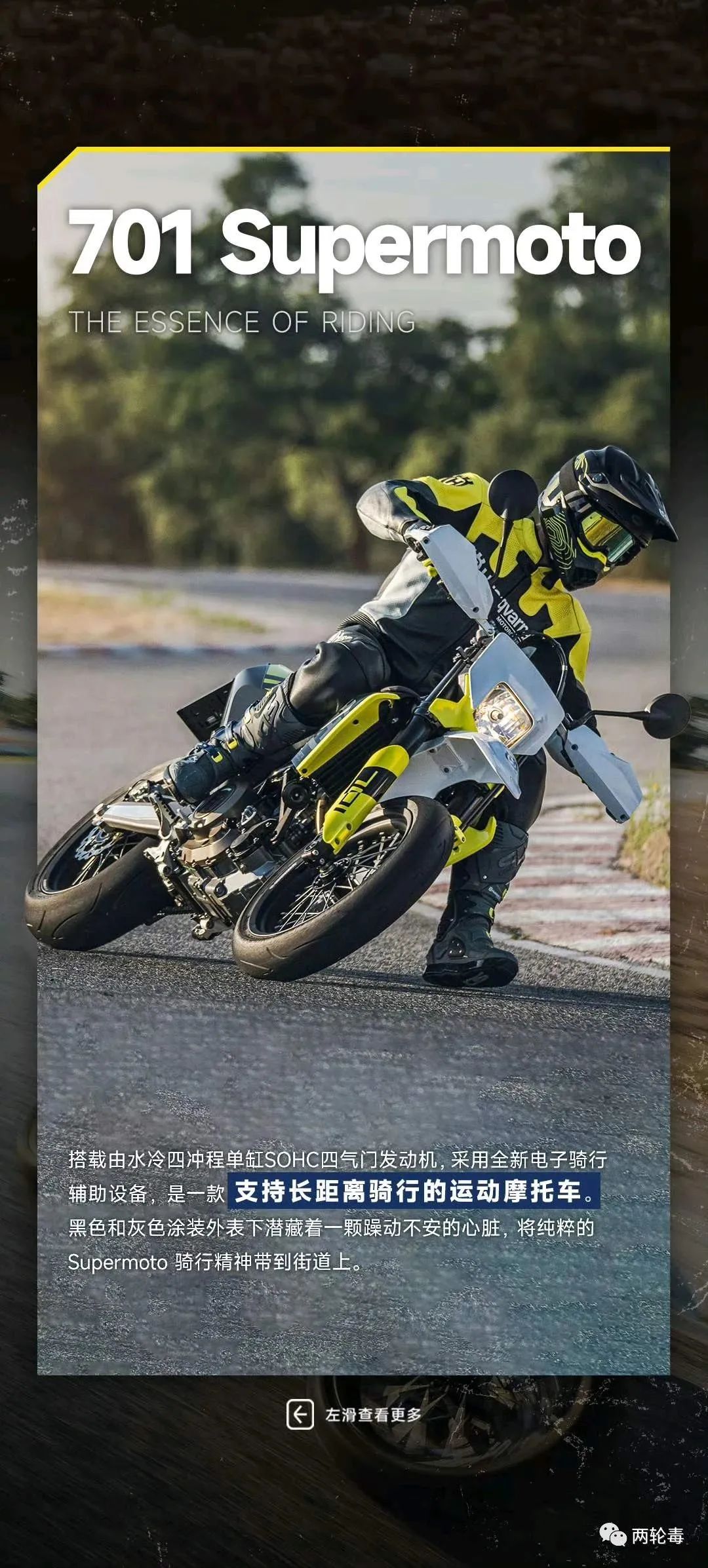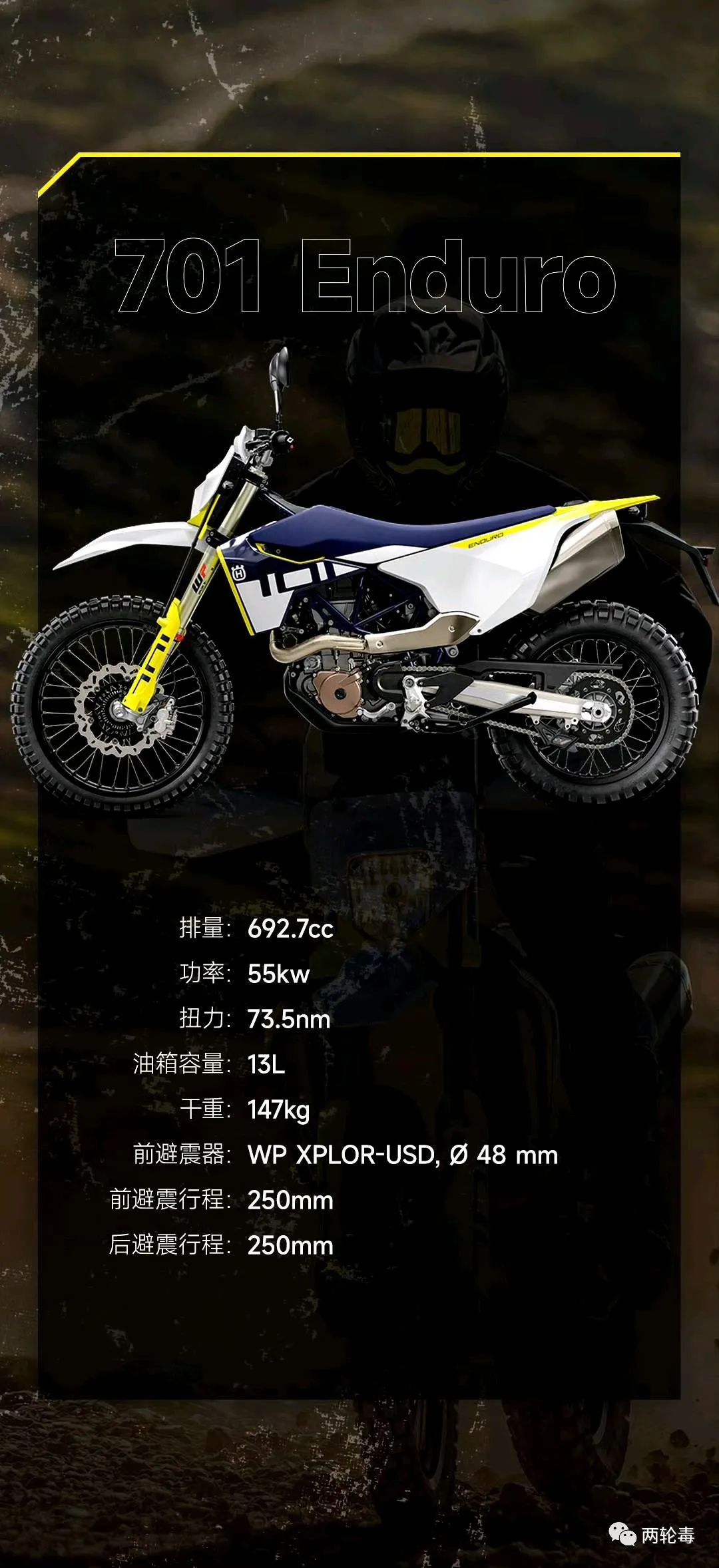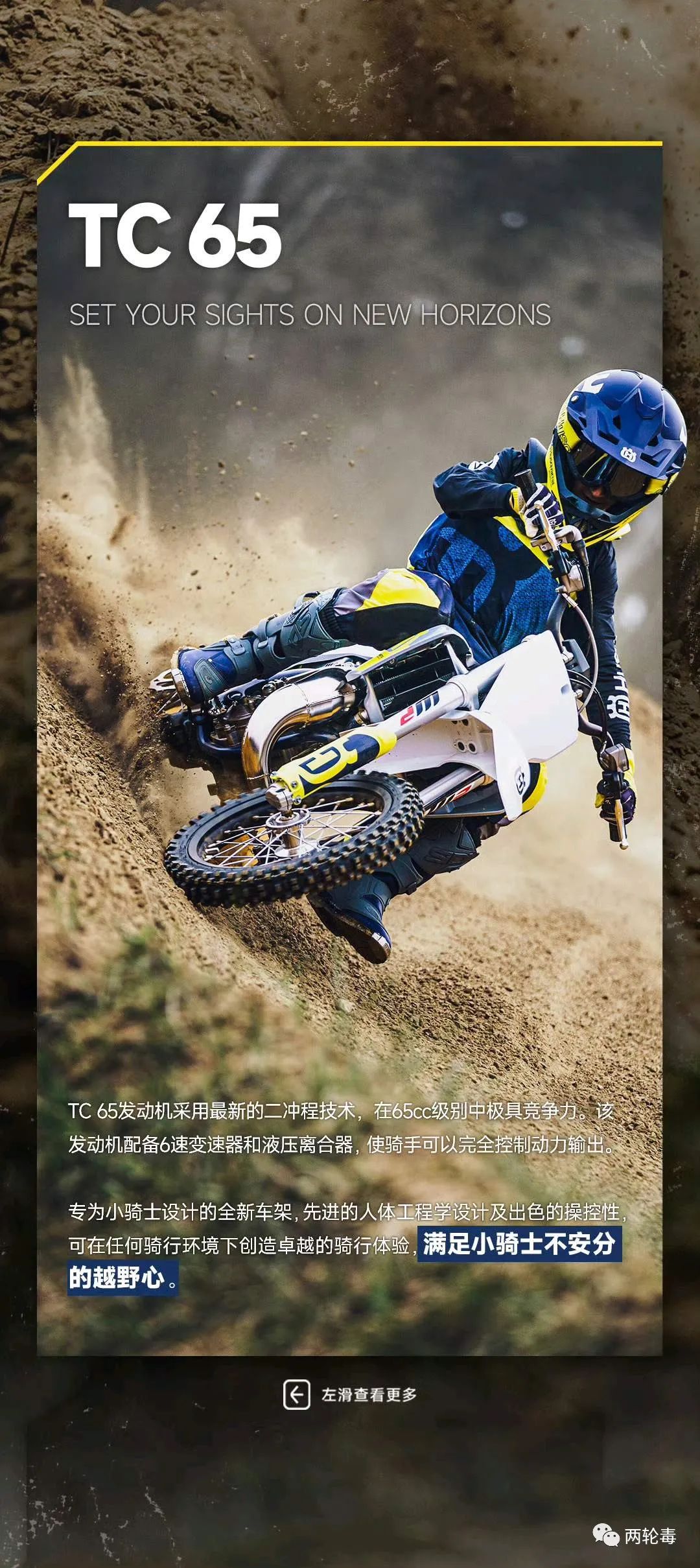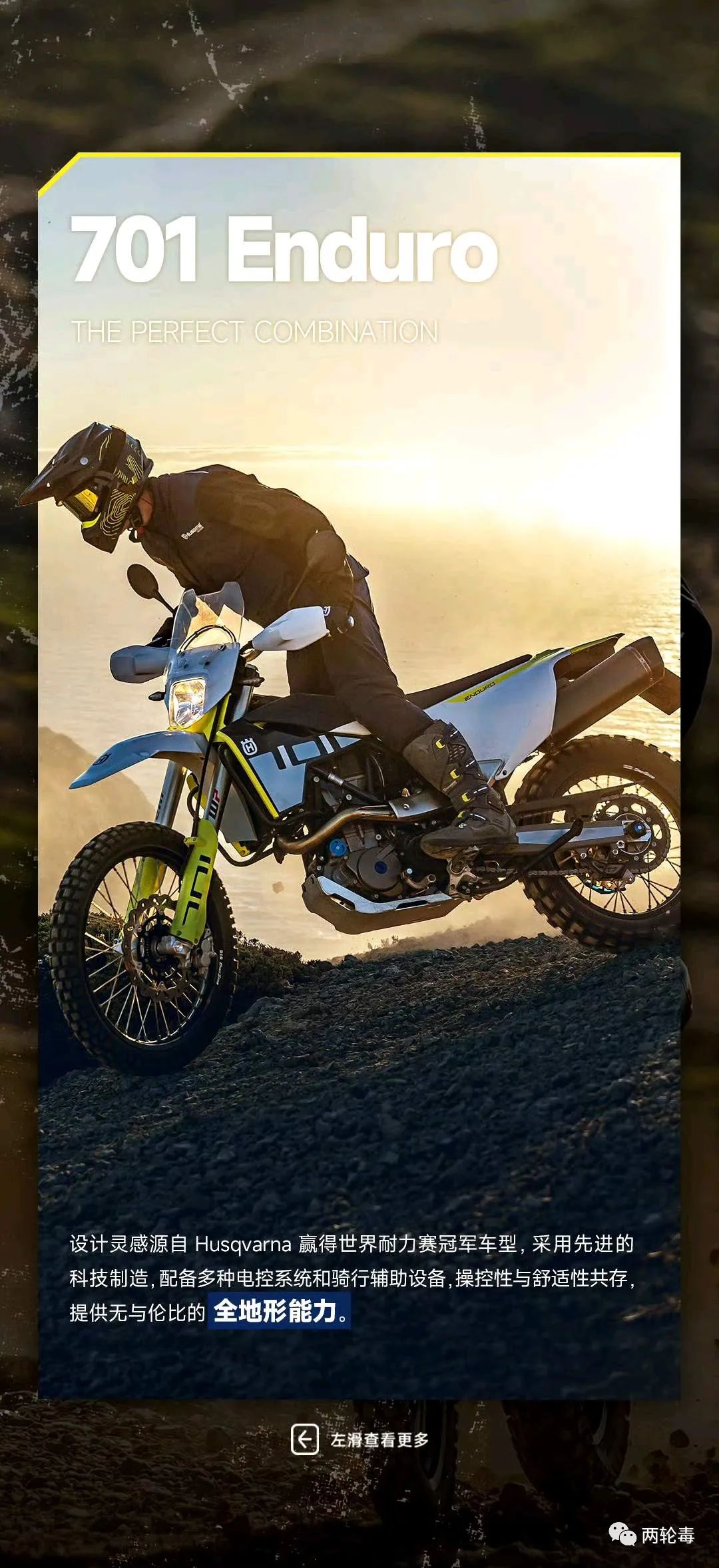9月5日,Husqvarna官微发布,旗下三款玩乐属性摩托车即将引进内地市场,目前开启预定,分别是迷你越野摩托车型TC 65,越野车型701 Enduro以及滑胎车型701 Supermoto。